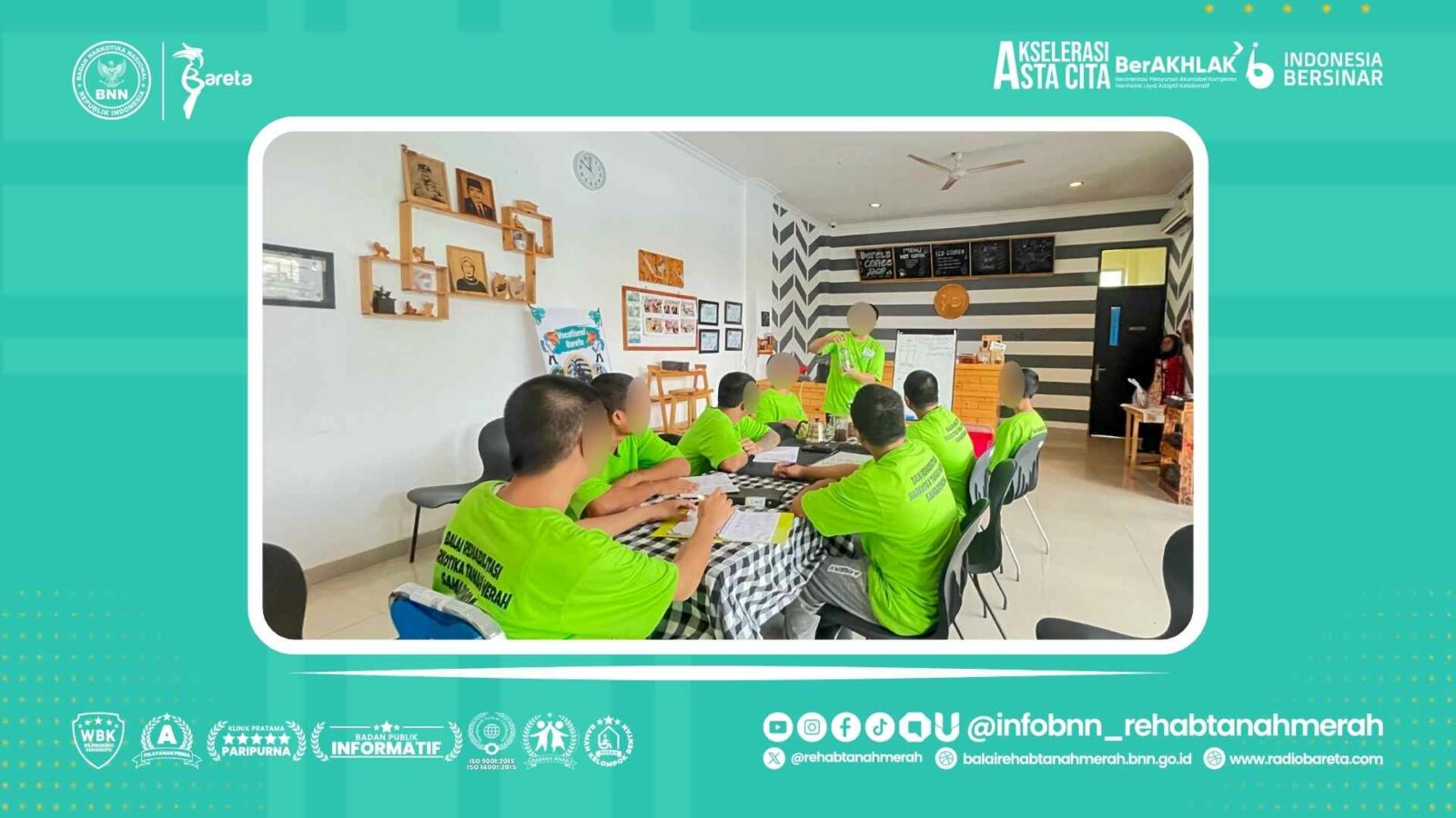 Melalui pendekatan ini, diharapkan para klien dapat kembali ke masyarakat dengan kesiapan yang lebih baik, serta memiliki bekal keterampilan untuk mandiri secara ekonomi. Lebih dari sekadar menyeduh kopi, program ini menjadi simbol perubahan—bahwa setiap individu yang pernah terjerat penyalahgunaan narkoba memiliki peluang untuk pulih, berkarya, dan berkontribusi positif bagi masyarakat. (Humas Bareta, 2025/AW)
