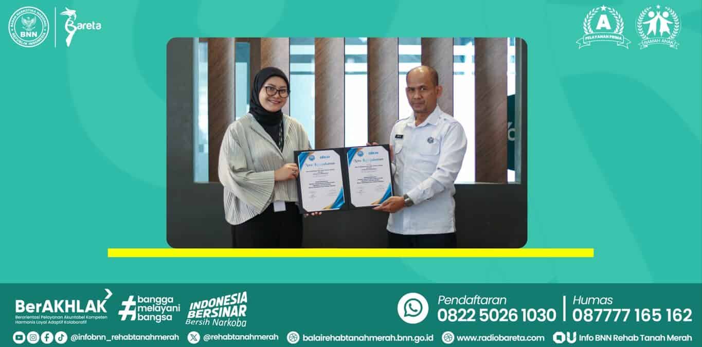 Sebagai upaya peningkatan kualitas program Terapi Keterampilan Hidup Dasar (TKHD) atau yang biasa dikenal dengan Vokasional, Balai Rehabilitasi BNN Tanah Merah melakukan penandatanganan Memorandum of Understanding (MoU) dengan Excelso Samarinda. MoU ini akan menjadi dasar pelaksanaan berbagai kegiatan antara para pihak khususnya dalam pendampingan pelatihan vokasi Barista Klien Balai Rehabilitasi BNN Tanah Merah. Dalam sambutannya, Kepala Balai Rehabilitasi BNN Tanah Merah, Bapak Drs. Sutarso, S.H., M.Sc menyampaikan selain program-program pemulihan yang diberikan, Balai Rehabilitasi BNN Tanah Merah juga sangat concern untuk meningkatkan produktivitas klien Balai Rehabilitasi BNN Tanah Merah, agar setelah selesai menjalani program pemulihan di Balai Rehabilitasi BNN Tanah Merah, klien dapat mengaplikasikan ilmu vokasi yang didapatkan untuk menambah nilai ekonomis.