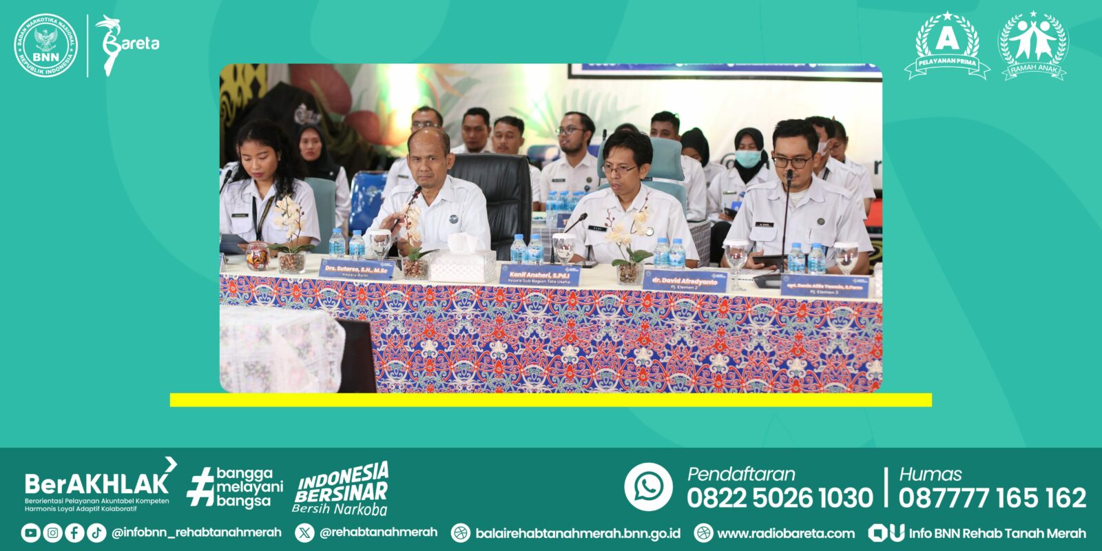 Lembaga Akreditasi Puskesmas Klinik dan Laboratorium Indonesia (LAPKLIN) melakukan survei akreditasi di Klinik Pratama Balai Rehabilitasi BNN Tanah Merah. Pada kegiatan Virtual Entry Meeting yang merupakan agenda akreditasi hari pertama ini telah dilakukan pemaparan mengenai penatalayanan Klinik Pratama Balai Rehabilitasi BNN yang mencakup Tata Kelola Klinik, Peningkatan Mutu dan Keselamatan Pasien; dan Penyelenggaraan Kesehatan. Kepala Balai Rehabilitasi BNN Tanah Merah, Bapak Drs. Sutarso, S.H., M.Sc hadir didampingi Kepala Sub Bagian Tata Usaha, Bapak Kanif Anshori, S.Pd.I, bersama Koordinator Layanan, Ibu Christiana, SKM., M.Si serta para penanggungjawab elemen penilaian. Dalam sambutan di awal kegiatan, Bapak Drs. Sutarso, S.H., M.Sc menyampaikan bahwa Klinik Pratama Balai Rehabilitasi BNN Tanah Merah sangat terbuka dengan berbagai saran dan masukkan dari Tim Surveyor terkait pengembangan kualitas pelayanan Klinik Pratama Balai Rehabilitasi BNN.