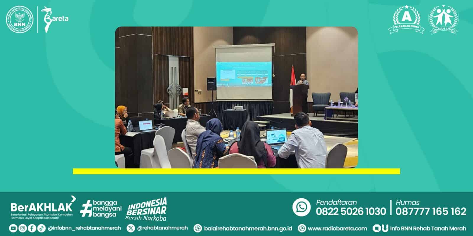 Kedeputian Bidang Rehabilitasi Badan Narkotika Nasional Republik Indonesia melaksanakan Rapat Kerja Balai/Loka Rehabilitasi pada tanggal 15-17 Februari 2024 di Kota Bandung. Pada kesempatan tersebut, Kepala Balai Rehabilitasi Tanah Merah, Bapak Drs. Sutarso, S.H., M.Sc memaparkan gambaran umum layanan rehabilitasi, capaian kinerja, inovasi-inovasi dan juga masukan terkait juknis rehabilitasi rawat inap terbaru. Dalam paparan yang disampaikan, Bapak Drs. Sutarso, S.H., M.Sc menyampaikan, Balai Rehabilitasi BNN Tanah Merah sebagai satu-satunya UPT Bidang Rehabilitasi yang berlokasi di dataran Ibu Kota Negara Nusantara perlu mengantisipasi tantangan pelayanan kedepan seiring dengan pembangunan Ibu Kota Negara Nusantara yakni kemungkinan meningkatnya jumlah klien, meningkatnya peredaran zat jenis baru, serta tantangan-tantangan lainnya.