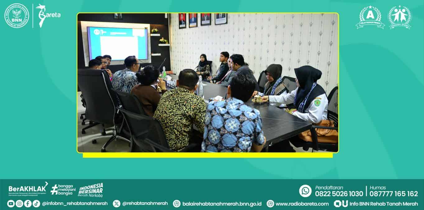 Balai Rehabilitasi BNN Tanah Merah menerima kunjungan Komisioner Komisi Informasi Provinsi Kalimantan Timur dalam rangka verifikasi lapangan kepatuhan keterbukaan informasi publik. Kepala Balai Rehabilitasi BNN Tanah Merah, Bapak Bambang Styawan, S.Pd.,M.M.,M.Si didampingi Koordinator Layanan, Program Manager, Pj. Klinik Pratama, Pj. Kepegawaian, dan Pj. Informasi Data beserta Tim Humas Balai Rehabilitasi BNN Tanah Merah menyambut secara langsung kehadiran Bapak Muhammad Khaidir, SH.I selaku Komisioner Komisi Informasi Provinsi Kalimantan Timur. Kegiatan verifikasi lapangan dimulai dengan pemaparan Kepala Balai Rehabilitasi BNN Tanah Merah terkait Komitmen Organisasi, Komitmen Pimpinan, serta inovasi-inovasi yang dilakukan dalam rangka menyelenggarakan keterbukaan informasi di Balai Rehabilitasi BNN Tanah Merah.