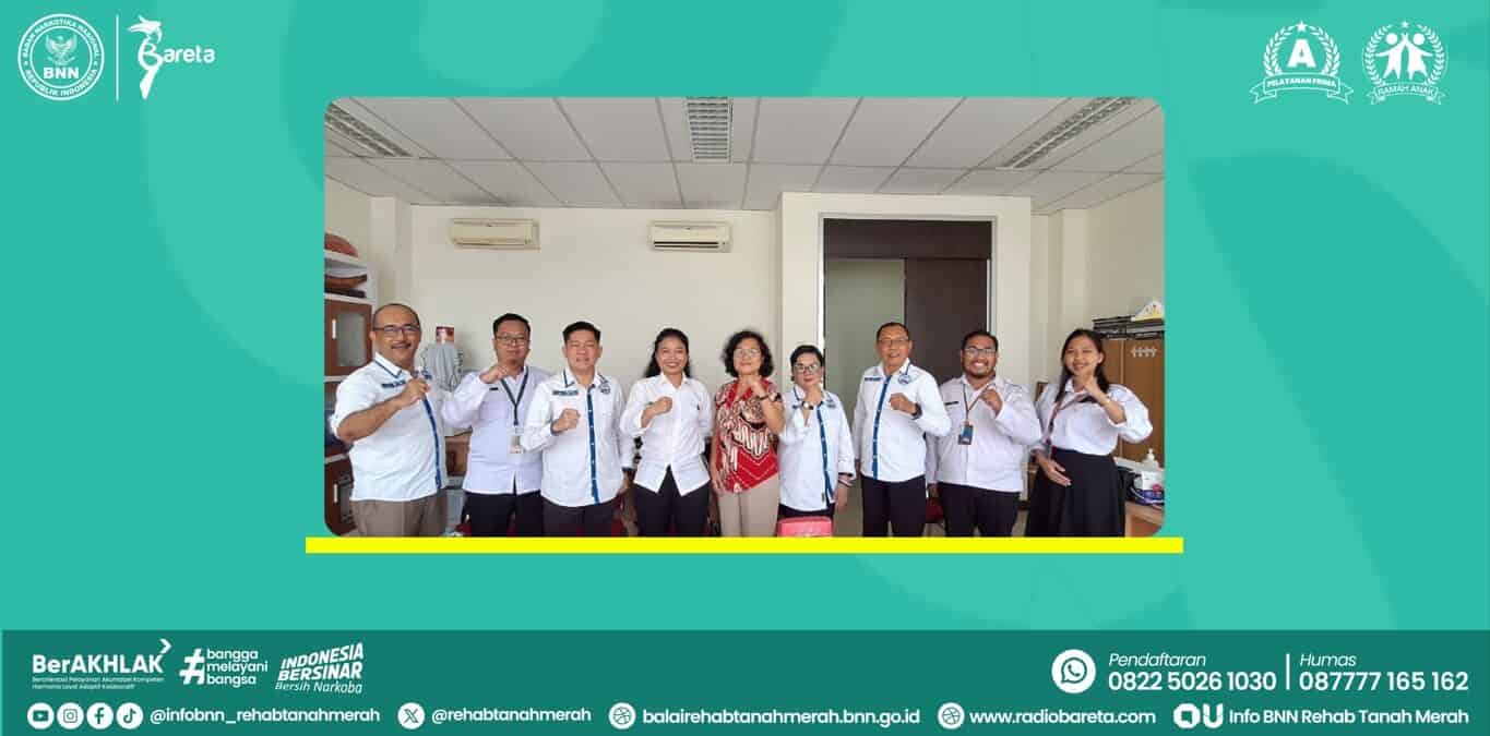 Balai Rehabilitasi BNN Tanah Merah sebagai salah satu unit penyelenggara pelayanan publik bidang rehabilitasi memiliki komitmen yang sangat tinggi untuk memberikan pelayanan terbaik kepada pengguna layanannya dalam hal ini para klien rehabilitasi. Hal tersebut ditunjukkan dengan adanya semangat untuk memberikan pelayanan terbaik khususnya dalam bidang pembinaan rohani dan spiritual. Beberapa waktu yang lalu, Tim dari Balai Rehabilitasi BNN Tanah Merah yang diwakilkan oleh Koordinator Layanan Rehabilitasi Christiana, SKM., M.Si, Program Manager Baihaqi, A.Md. Kep, Pj. Humas dan Kerjasama Ns. Angga Kusuma Pramandita Willem, S.Kep, Pembina Rohani Kristen Rika Sartika Tobias, S.Pd, dan anggota Humas Yudis Surya Juniardi, A.Md.Ds melakukan audiensi bersama Persekutuan Gereja-Gereja di Indonesia (PGI) Wilayah Kalimantan Timur.